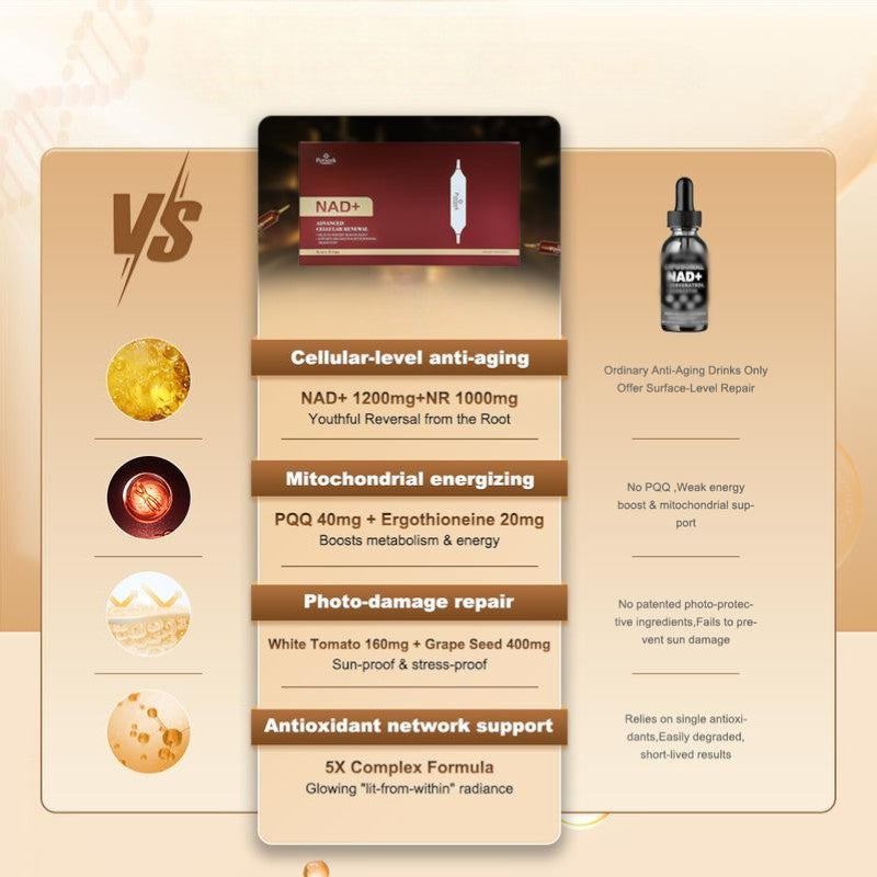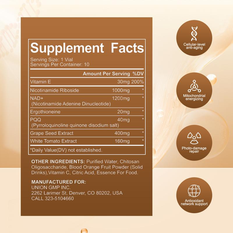 Cada dosis contiene 1200mg de NAD+ puro, el coenzima esencial para la energía celular y la regeneración. Diseñado para quienes buscan rendimiento, longevidad y una piel más joven — todo en una fórmula líquida fácil de tomar. Gracias a su formato líquido, el NAD+ se absorbe rápidamente, permitiendo que el cuerpo lo utilice de manera más eficiente. Persek combina tecnología avanzada y pureza clínica para ofrecer resultados reales en energía, concentración y vitalidad diaria.